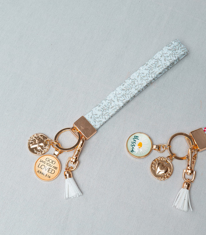 Wrapped -Wristlet key chain Total length: 8.5"; Wristlet: 6"
